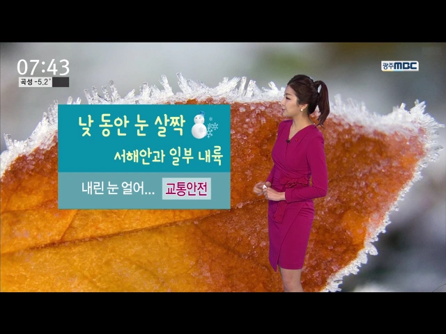 앵커멘트) 어제 광주에서는 올해 들어 첫 눈이 관측됐습니다. 작년과 비교해서 18일이나 늦게 눈이 내린건데요. 오늘 본격적으로 광주와 전남 지역에 눈이 오기 시작하겠습니다. (새벽부터 광주와 전남지역에 눈이 많이 오기 시작했습니다.) 백단비 기상캐스터, 오늘 눈이 얼마정도 내립니까? 캐스터) 네, 어제는 살짝 눈발...