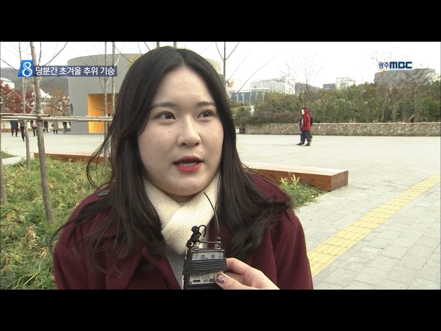 (앵커) 겨울의 문턱으로 접어들면서 기온이 큰 폭으로 떨어졌습니다. 전남 일부 시군에는 한파주의보가 내려지고 내일 새벽 서해안 지역에는 눈이 내릴 것으로 전망됩니다. 백단비 기상캐스터입니다. (캐스터) 거리에 나온 시민들이 두툼한 외투와 마스크로 무장을 했습니다. 바람도 제법 강하게 불면서 체감 온도가 떨어져...