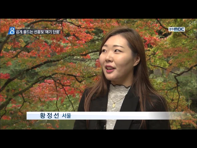가을이 깊어지면서 광주전남지역에서도 단풍이 차차 절정을 이룰 전망입니다. 민간 기상정보업체인 웨더아이에 따르면 지리산의 단풍 절정 시기는 지난해보다 4일 정도 늦은 오는 26일로 예상됩니다. 또, 광주 무등산은 오늘(23) 첫 단풍이 들기 시작해 다음 달 7일쯤 단풍이 절정을 보일 것으로 보입니다.