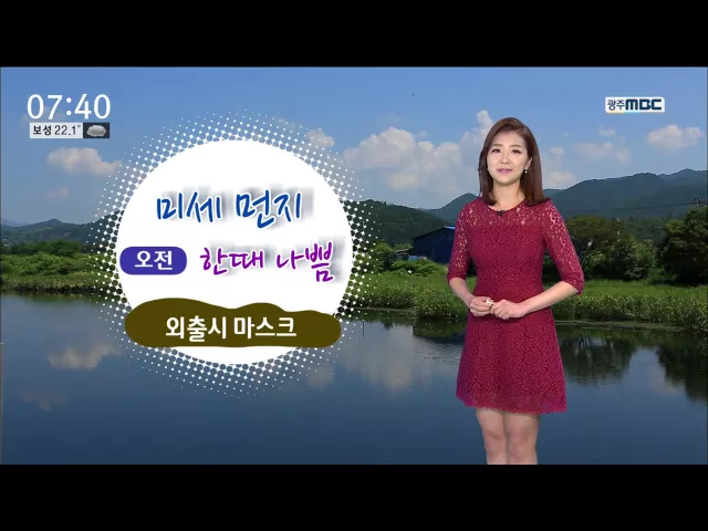 절기상 '백로'인 내일 맑은 날씨를 보이는 가운데 초가을 늦더위는 이어지겠습니다. 광주의 낮 최고 기온은 29도로 오늘과 비슷하거나 조금 높겠고 나주와 광양 30도 등 전남 대부분 지역 30도 안팎의 낮기온이 예상됩니다. 광주와 전남 지역은 내일 미세먼지 농도가 온종일 '나쁨'단계를 보이겠습니다. 기상청은 당분간 비...
