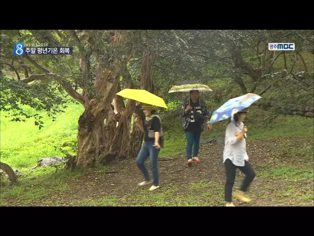 (앵커멘트) 요즘 날씨가 참 변덕스럽습니다. 오늘 광주와 전남 지역은 제 12호 태풍 '남테운'의 간접영향권에 들면서 흐리고 비가 왔는데요. 주말 날씨는 어떨지 백단비 기상캐스텁니다. (캐스터) 빗방울을 머금은 빨간 꽃잎이 마치 수채물감으로 물들인 듯 선명합니다. 담양 명옥헌 주변을 둘러싼 20여 그루 배롱나무의 붉...