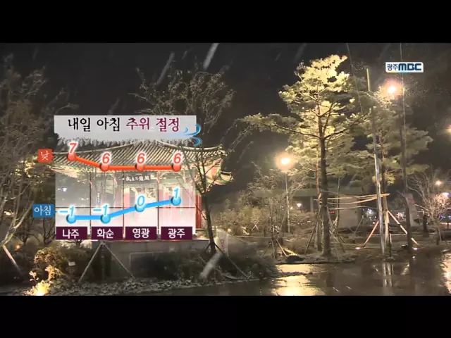 (앵커) 첫눈을 반기는 분들이 많았겠습니다만 너무 많이 내리면 여러모로 불편할 텐데요. 얼마나 더 올지 알아보겠습니다. 아시아문화전당 앞에 나가 있습니다. 김은수 캐스터? 지금도 눈이 내리고 있나요? ##[질문1] 김은수 캐스터, 지금 눈이 내리고 있나요? ======== 네, 11월에 찾아온 겨울 추위가 매섭습니다. 퇴근길...
