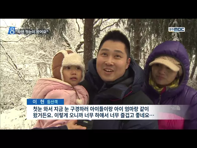 (앵커) 오늘 첫눈이 내렸습니다. 기온도 뚝 떨어졌습니다. 이제 진짜 겨울인가 봅니다. 시민들은 첫눈을 즐겼고, 겨울나기 준비도 바빠졌습니다. 송정근 기자입니다. (기자) 새하얀 눈꽃송이가 나뭇가지 위로 살포시 내려 앉았습니다. 등산객들은 카메라에 눈꽃을 담기에 바쁘고, 설산을 배경으로 가족 사진도 찍습니다. 기...