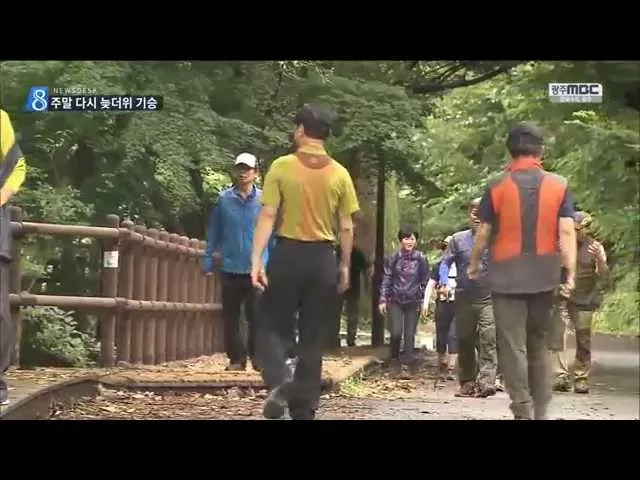 (앵커) ~~~~~~ 주말인 내일은 다시 늦더위가 나타나겠습니다. 김은수 기상캐스텁니다. ========= 무등산 아래 길게 뻗은 나무는 시원한 그늘을 만들어줍니다. 가을의 길목에서 숲이 만들어내는 향내음은 더 짙어졌습니다. 산행 벗들과 오르막길을 힘차게 걷기도 하고 바위에 걸터 앉아 잠시 쉬어가기도 합니다. ◀인터뷰▶ "...