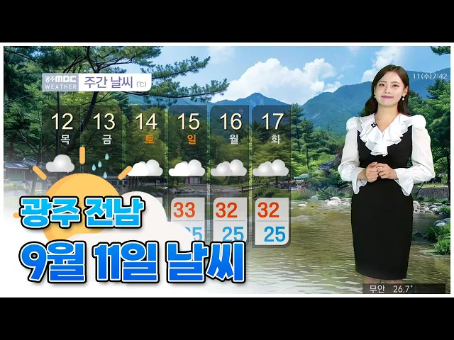 9월로 접어든 지 한참인데도아직까지도 한여름 더위가 이어지고 있습니다.광주와 전남 전지역에 폭염 특보가발효중인 가운데특히, 곡성과 구례에서는폭염 경보가 내려져 있고요.오늘 광주의 한낮기온도무려 34도 까지 오를 것으로 예상되는 가운데무더운 날씨가 이어지겠습니다.계속 이어지는 폭염에건강관리 잘 해주셔야겠...