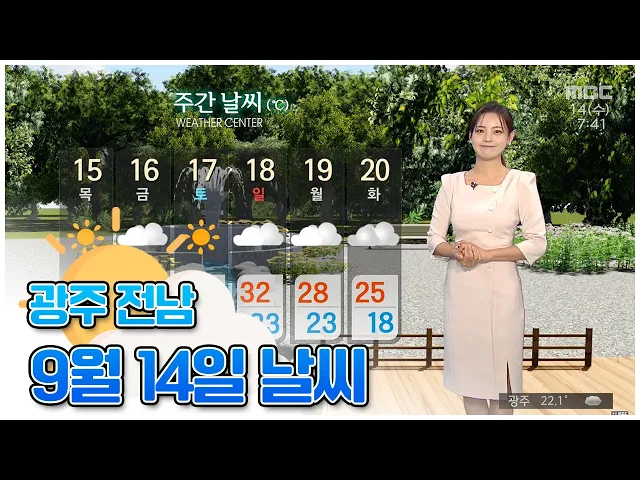 선선한 가을이 오나 싶었지만, 오늘 낮더위가 이어지겠습니다. 광주의 한낮기온 31도 까지 오르면서 어제보다 4도 가량 높은 기온 보이겠고요 일교차는 10도로 매우 크게 벌어지겠습니다. 감기 걸리기 정말 좋은 환절기입니다. 체온조절에 신경 잘 쓰셔야겠습니다. 한편 바람은 강하게 불고있습니다. 남해안 지역을 중심으...