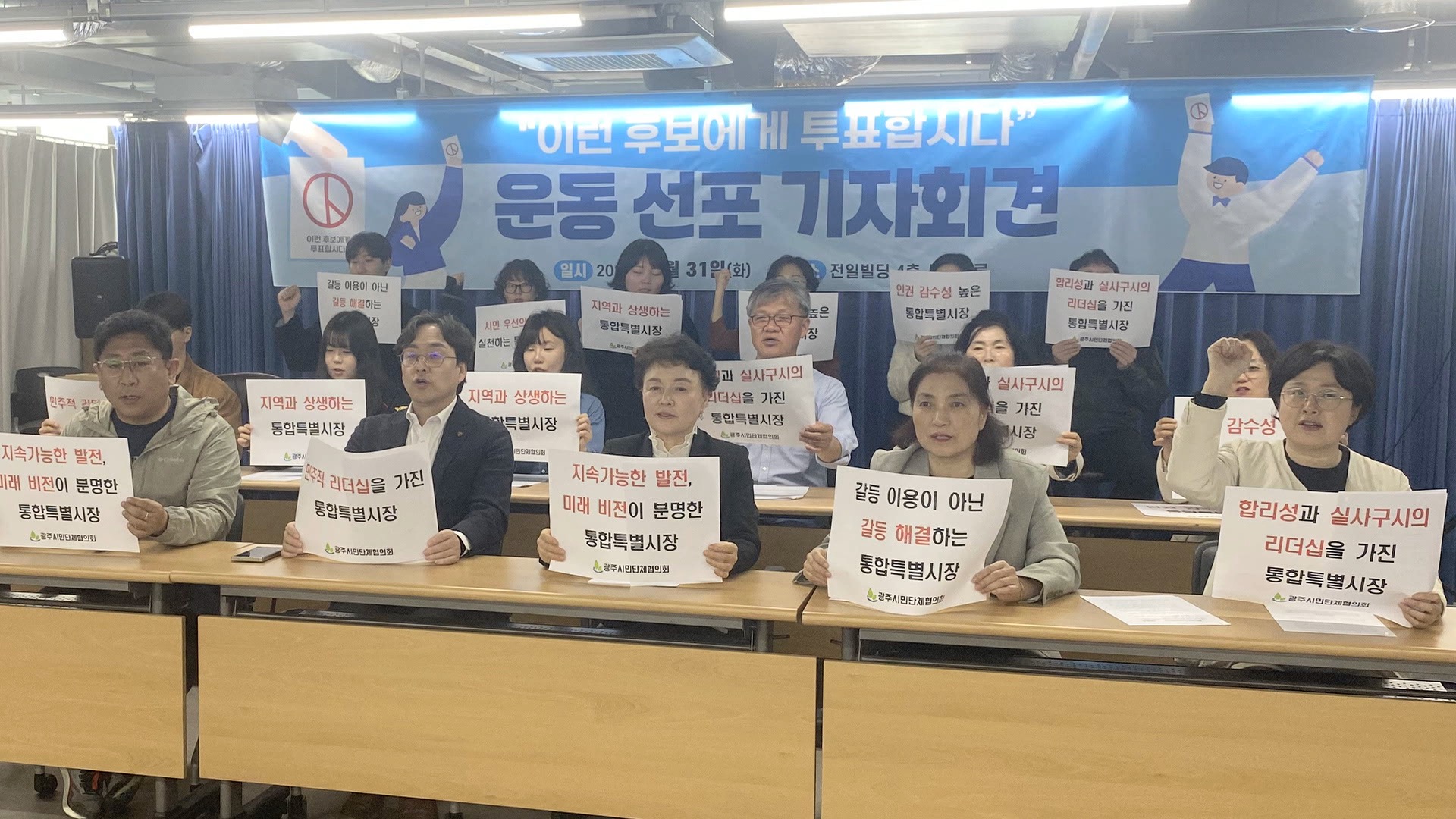 광주 시민단체들이 전남광주통합특별시장의 자질과 정책을 직접 검증하겠다고 나섰습니다.광주시민단체협의회는 오늘(31) 기자회견을 열고 통합적 리더십과 인권 감수성, 그리고 분명한 미래 비전을 갖춘 시장을 뽑기 위해 '이런 후보에게 투표합시다'라는 시민주권자 운동을 시작한다고 밝혔습니다.단체 측은 "시민들의 힘...