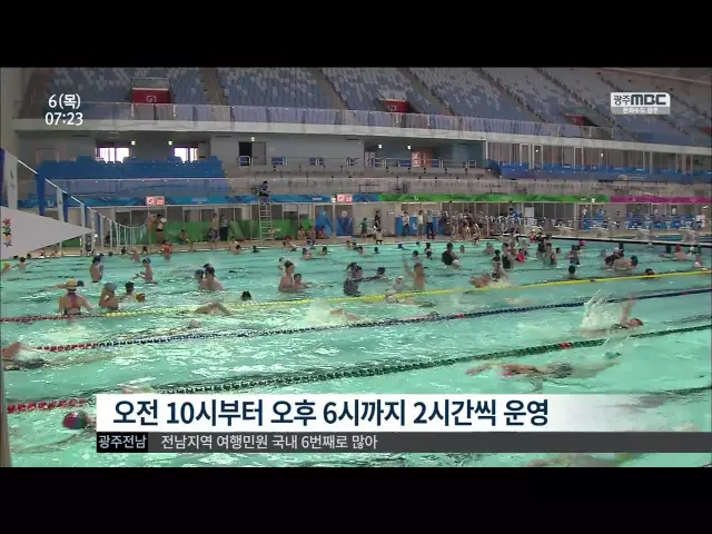(앵커) 광주 유니버시아드 대회를 치른 남부대학교 국제수영장이 무료로 개방됐습니다. 무더위에 지친 시민들이 시원한 물놀이를 즐겼습니다. 김인정 기자입니다. (기자) 유니버시아드 출전 선수들이 물살을 갈랐던 국제수영장이 시민들로 가득 찼습니다. 여름휴가를 맞이한 가족들과 수영동호인들은 고대해왔던 새로운 시...