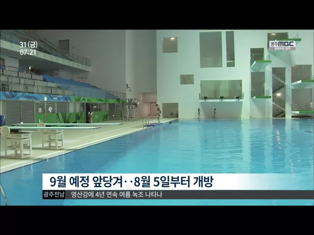 (앵커) 얼마전 무더위가 기승인데 U 대회 치르고 난 수영장들, 시민들이 사용 못하고 있다는 소식 전해드렸는데요. 광주시가 남부대 국제 수영장부터 시민에게 개방하기로 전격 결정했습니다. 김인정 기자입니다. (기자) 하계 유니버시아드를 치른 남부대학교 국제수영장이 다음 주부터 무료 개방됩니다. 오는 8월 5일, 다...