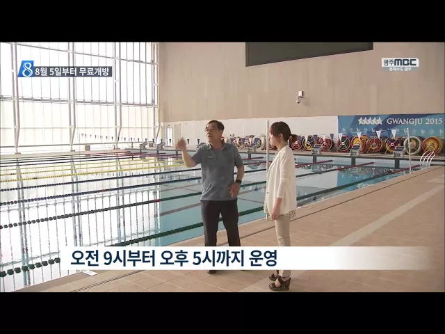 (앵커) 이번엔 조금 시원한 소식입니다. 광주시가 남부대 국제 수영장을 다음주부터 개방하기로 했습니다. 그것도 9월 전까지는 무료입니다. 한여름에 개방 안하면 언제 할거냐는 시민들의 요구를 받아들였습니다. 김인정 기자입니다. (기자) 하계 유니버시아드를 치른 남부대학교 국제수영장이 다음 주부터 무료 개방됩니...