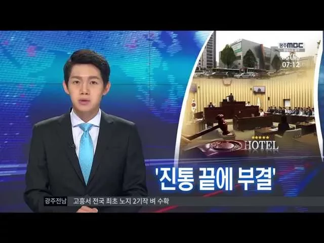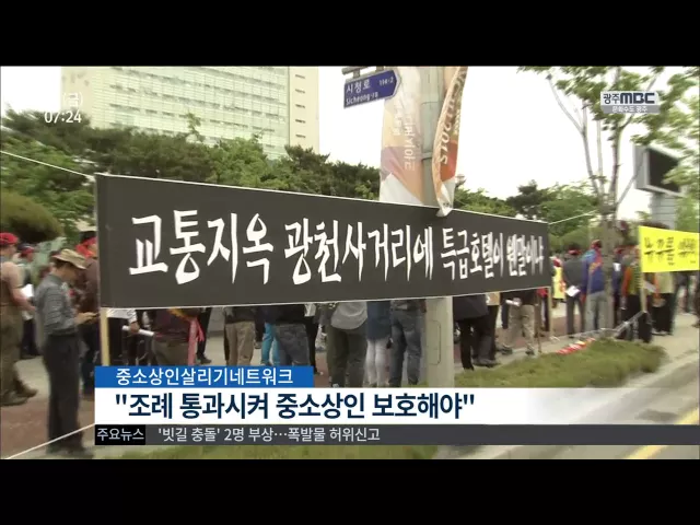 (앵커) 광주 서구의회가 오늘 하루종일 시끄러웠습니다. 광주 신세계가 특급호텔과 함께 추진 중인 복합 쇼핑몰 사업에 제동을 걸 수도 있는 조례가 상정됐기 때문인데요. 조례는 부결됐습니다. 신세계는 한숨을 돌리게 됐지만 의원들 사이에서는 꼼수 논란이 불거졌고, 중소상인들의 항의도 빗발쳤습니다. 김철원 기자가 ...