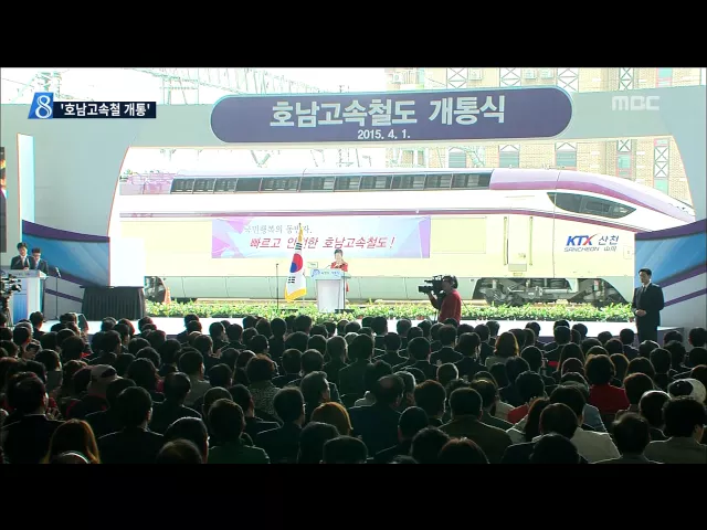 (앵커) 남)먼저,오늘 있었던 개통식부터 전하겠습니다. 한때 소외의 대명사였던 호남선은 이제 도약의 디딤돌로 거듭나게 됐습니다. 여)개통식에 참석한 박근혜 대통령은 호남고속철도 개통이 지역 발전의 전기가 될 것이라고 말했습니다. 첫 소식, 김철원 기자입니다. (이펙트)폭죽 2015년 4월, 호남고속철시대가 열렸습니...
