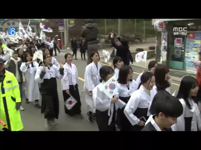 (앵커) 96돌 3.1절을 맞아 광주전남지역에서도 애국애족 정신을 기리는 행사가 펼쳐졌습니다. 학생들은 일제 강점기 애국 선열들의 3.1 운동을 직접 재현하며 나라사랑 정신을 되새겼습니다. 이계상 기자.. (기자) 흰 저고리에 검정 치마를 입은 여고생들이 손에 손에 태극기를 들고 행진을 합니다. 학생들은 힘차게 태극기...