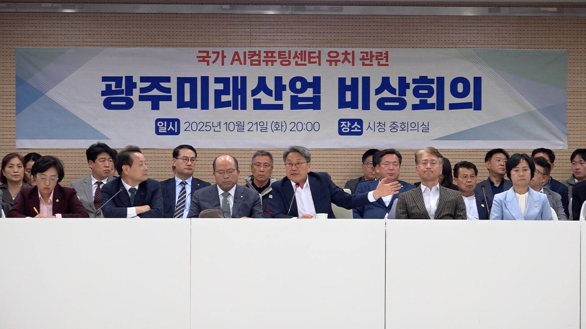 광주시장과 구청장, 시민단체장 등이 '광주 미래산업 비상회의'라는 명의로 국가AI컴퓨팅센터 유치 실패에 대한 입장을 민주당에 전달했습니다.비상회의는 입장문에서 이재명 대통령의 대선 공약이었는데도 광주가 선택받지 못해 시민들이 당혹감과 실망감을 감추지 못하고 있다며 광주 설립 공약을 이행하라고 촉구했습니...