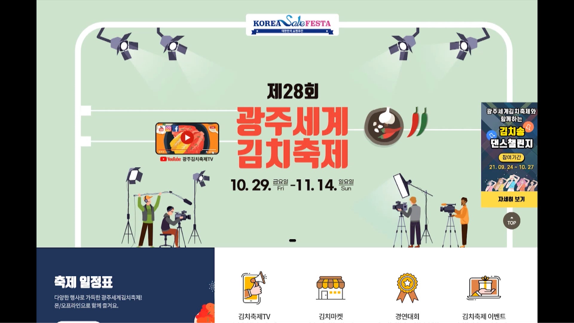 광주 세계 김치 축제가 이번주부터 온라인에서 열립니다.광주시는 오는 29일부터 다음달 14일까지'천년의 김치, 광주와 세계를 잇다'를 주제로 하는제28회 광주 세계 김치 축제를홈페이지와 유튜브를 통해 온라인으로 선보인다고 밝혔습니다.이번 축제에는 미국, 중국, 프랑스 등외국인이 화상으로 김치를 담그고,김치의 날...