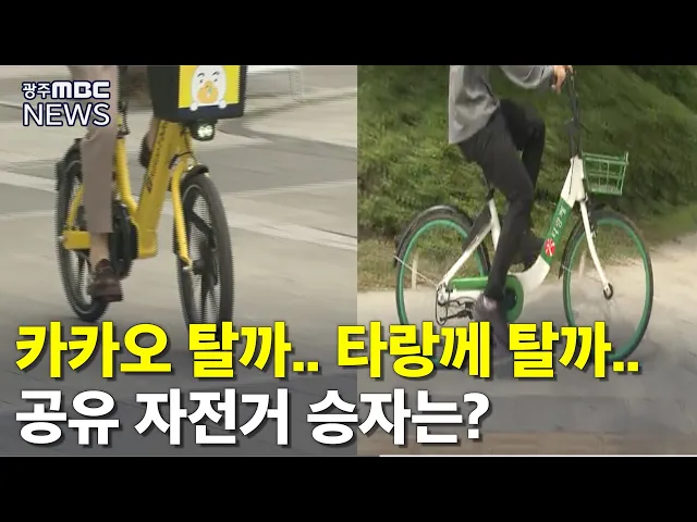 (앵커) 최근 카카오가 공유 자전거 서비스를 광주에서도 시작했습니다. 이미 지난해부터 운영되고 있는 광주시의 공공 무인자전거, 타랑께가 있지만, 여러모로 경쟁력을 고민할 필요가 있어보입니다. 송정근 기자의 보돕니다. (기자) 도심을 질주하는 노란색의 자전거. 이번달부터 서비스를 시작한 카카오 자전거입니다. 아...