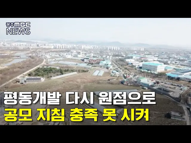 (앵커) 여러분 안녕하십니까 광주mbc 뉴스데스크 시작합니다. 한류문화콘텐츠를 전면에 내세워 요란하게 등장했던 광주 평동 준공업지역 개발사업이 결국, 원점으로 돌아갈 것으로 보입니다. 우선협상대상자가, 광주시가 제시한 원칙을 충족하는 개선안을 내놓지 못했기 때문인데요. 광주시는 내일 자문단회의를 통해 후속 ...