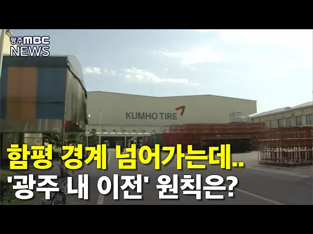 (앵커) 금호타이어 광주공장을 이전하는 일이 옮겨갈 부지를 찾지 못해 2년 넘게 제자리 걸음입니다. 당장 이전이 가능한 빛그린산단이 있기는 하지만 광주 경계를 넘어 함평까지 포함된다는 점이 문제입니다. 이계상 기자가 보도합니다. (기자) 광주 송정역과 맞닿아있는 금호타이어 광주공장은 그 규모가 42만 제곱미터에...