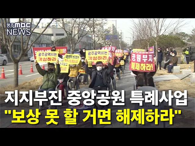 (앵커) 광주 중앙공원 1지구 사업자들의 내부 갈등 때문에 토지 보상이 기약없이 미뤄지고 있습니다. 그러자 토지 소유자들이 더이상은 재산권 제약을 못 참겠다며 차라리 특례사업을 철회하라고 목소리를 높였습니다. 이계상 기자가 보도합니다. (기자) 광주 중앙공원 1지구는 전체 면적이 240만 제곱미터에 이릅니다. 이 ...