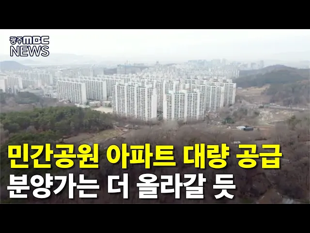 (앵커) 민간공원 특례사업에 따라 대규모 아파트 단지가 올해 하반기부터 차례로 공급됩니다. 토지 보상 절차가 지연되면서 분양 시기가 늦어지고, 아파트 분양가도 당초 예상 보다 상당히 올라갈 전망입니다. 이계상 기자.. (기자) 광주 봉산근린공원 조성을 위해 산비탈을 깎아 진입로를 만들고 있습니다. 민간공원 특례 ...