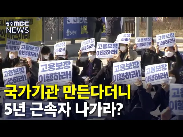 (앵커) 광주 지역 현안이었던 아시아문화중심도시 특별법 개정안이 통과됐지만 논란이 이어지고 있습니다. 기존 아시아문화원 노동자들은 고용승계를 보장했던 부칙 조항이 사라졌다며 대책 마련을 요구하고 있습니다. 우종훈 기자가 취재했습니다. (기자) 지난달 지역 현안 법안이었던 아시아문화중심도시 특별법 개정안이...