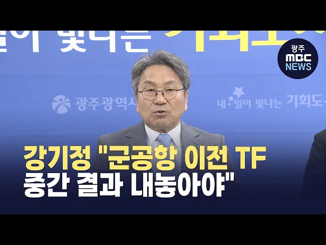 강기정 광주시장이 군공항 이전 TF가 중간 결과를 내놓아야 한다고 요구했습니다.강 시장은 오늘(16일) 기자들과 만난 자리에서 "대통령실이 주도하는 광주 공항 이전 TF가 구성 이후 두 달이 지나도록 진척이 없다"며 "그동안 관련 기관의 의견은 수렴했을 것인 만큼 이제는 정식 회의를 소집해 달라"고 요청했습니다.또 ...