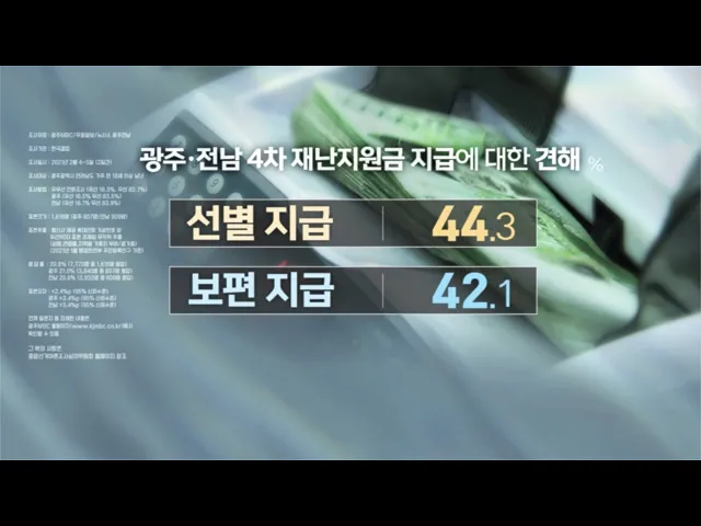 (앵커) 광주*전남 방역당국의 코로나19 대응에 대해선 잘하고 있다는 평가가 많았습니다// 정부 4차 재난지원금은 지급해야 한다는 응답이 많았지만 선별 지급이냐, 보편적 지급이냐를 두고는 의견이 팽팽히 맞섰습니다. 우종훈 기자의 보도입니다. (기자) 광주*전남 방역당국의 코로나19 대응에 대한 평가는 대체로 긍정적...