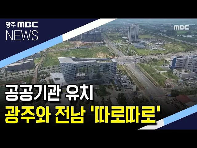 (앵커) 행정수도 이전 논의와 함께 공공기관 지방 이전 시즌2 성사 여부가 다시 주목을 받고 있습니다. 수도권에 있는 백여 개 기관이 이전 대상이 될 것으로 예상되는 가운데, 광주시와 전라남도는 공동 유치 보다 상호 중복 경쟁하는 모습을 보이고있습니다. 이계상 기자.. (기자) 수도권 16개 공공기관이 둥지를 틀고 자...