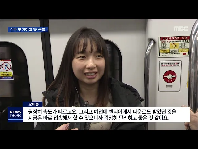 (앵커) 전국 지하철 가운데 처음으로 광주 지하철에 5G망이 구축됐습니다. 영화 한 편을 다운로드 받는 데 5초도 채 안 걸린다고 합니다. 이재원 기자입니다. (기자) 걸어가고 있는 동안에도 증강 현실의 캐릭터가 쉴새없이 움직이고, 달리는 지하철 안에서도 데이터 끊김없이 증강 현실을 즐길 수 있습니다. LTE급 통신망...