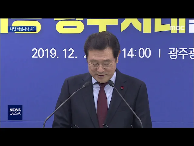앵커 내년에 광주시는 AI, 즉 인공지능을 중심으로 한 미래 먹거리와 일자리 창출에 주력하기로 했습니다. 5.18 40주년을 맞아 5.18 폄훼*왜곡을 막고 역사 바로세우기에도 매진하기로 했습니다. 한신구 기자의 보도 기자 이용섭 광주시장이 내년에는 혁신과 소통, 청렴을 바탕으로 인공지능 광주시대를 열겠다고 밝혔...