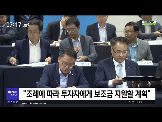 (앵커) 광주형 일자리 자동차공장 합작법인에 5백억원 가까이 광주시 예산이 투입될 예정입니다. 그런데 이것도 모자라 거액의 투자유치 보조금까지 추가로 지원할 것으로 확인돼, 과연 적절한 지 논란이 일고 있습니다. 송정근 기자.. (기자) 광주형 일자리 자동차공장 설립을 위해 광주시가 합작법인에 투자유치 보조금을...