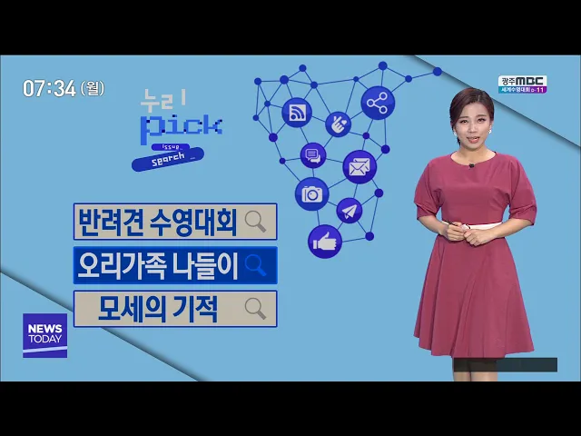 (뉴스리포터) 한 주간 누리꾼들의 관심사를 키워드로 정리해보는 '누리 픽' 시간입니다. 지난 한 주, 어떤 키워드가 많은 관심을 받았을까요? '반려견 수영대회', '오리가족 나들이' '모세의 기적'이 있었습니다. 어떤 내용인지, 먼저 '반려견 수영축제' 부터 살펴보겠습니다~ -------------------------------------------...