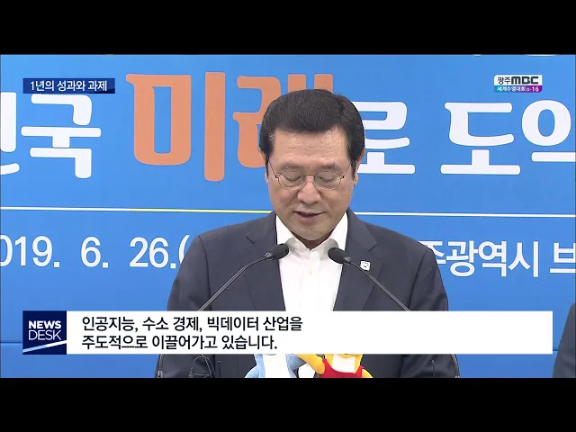 (앵커) 민선 7기가 출범하고 1년동안 광주시는 도시철도 2호선 등 밀린 숙제를 푸는데 성과를 거뒀습니다. 하지만 인사 혁신과 관광 인프라 확충 등은 한계를 드러내기도 했습니다. 송정근 기자입니다. (기자) 민선 7기의 가장 두드러진 성과는 광주형 일자리가 드디어 구체화되고 있다는 점입니다. 현대자동차와 투자협약...