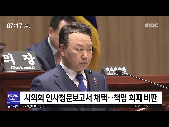 ◀ANC▶ 광주시 산하기관장 인사가 매번 말썽입니다. 시의회가 검증 책임을 회피한다는 비판 속에 시민단체가 광주시장의 인사를 견제하고 나섰습니다. 김인정 기자입니다. ◀VCR▶ 김강열 광주환경공단 이사장 후보자에 대한 시의회의 인사청문 보고서는 적격과 부적격, 그 사이였습니다. "김 후보자가 전문성은 갖췄지...