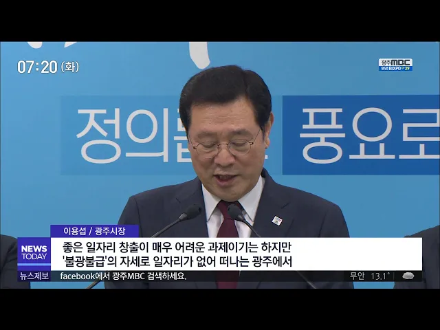 (앵커) 이용섭 광주시장이 앞으로 4년동안 일자리 10만 개를 만들겠다는 일자리 로드맵을 발표했습니다. 목표는 분명한데 환경이 불확실해서 실현이 가능할지는 미지수입니다. 보도에 정용욱 기자입니다. (기자) 지난해 광주고용률은 63.8%로 전국 평균보다 낮습니다. 광주시가 이를 평균 이상인 68%까지 끌어올리겠다며 일...