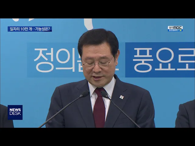 (앵커) 민선 7기가 출범한 지 어느덧 100일이 다 돼 갑니다./ 당선자들로서는 무언가 보여줘야 한다는 부담을 느끼는 시기이기도 합니다.// 이런 가운데 이용섭 광주시장은 앞으로 4년동안 일자리 10만 개를 만들겠다는 로드맵을 발표했습니다./ 목표는 분명한데 환경이 불확실해서 실현이 가능할지는 미지수입니다. 보도에...