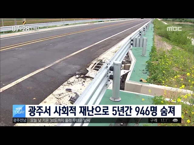 태풍과 같은 자연재난이 아닌 교통사고나 화재와 같은 사회적 재난으로 숨진 사망자가 광주에서 지난 5년 동안 1천명에 달하는 것으로 집계됐습니다. 광주시가 발간한 통계연보에 따르면 지난 5년 동안 사회재난으로 946명이 숨지고 198억원의 재산피해가 있었던 것으로 나타났습니다. 유형별로는 교통사고 사망자가 508명...