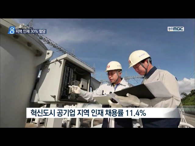 (앵커) 빛가람 혁신도시 공공기관에 지역 인재들이 취업할 수 있는 길이 넓어질 것으로 보입니다. 문재인 대통령이 지역 인재 채용을 대폭 늘리라고 주문했습니다. 윤근수 기자 (기자) 한전과 농어촌공사 등 빛가람 혁신도시의 공공기관들은 지역의 청년들이 선호하는 직장입니다. 하지만 지난해 빛가람 혁시도시 공기업들...