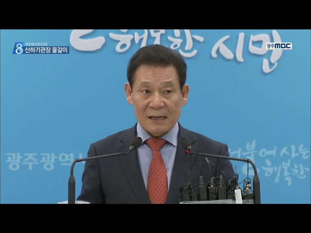 (앵커) 광주시가 산하기관장의 대폭적인 물갈이 인사에 착수했습니다. 측근 인사,보은 인사라는 꼬리표를 떼내고 분위기를 쇄신하겠다는 뜻으로 보입니다. 윤근수 기자 (기자) 광주시에 사표를 낸 산하기관장은 9명입니다. (CG)광주도시공사와 도시철도공사, 광주문화재단과 여성재단, 평생교육진흥원과 교통약자이동센터의...