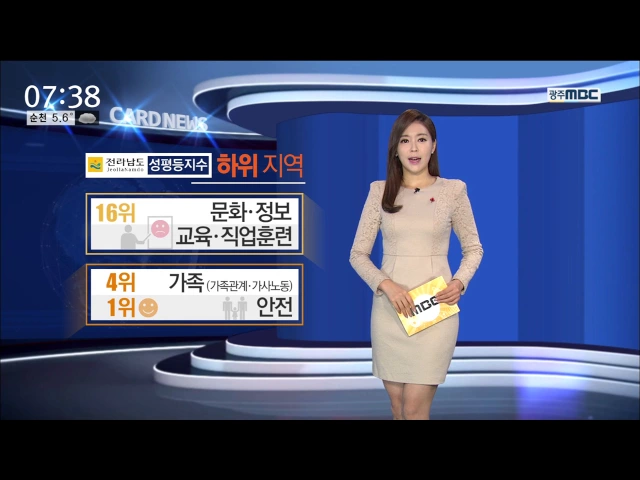 광주와 전남 지역, 여성들의 사회적 지위는 어떨까요? 여성가족부가 여성의 경제활동과 의사결정 등 8개 분야를 평가한 '성평등지수'를 발표했습니다. 전남의 성평등지수는 하위권을 차지했습니다. 특히, 여성의 고등교육기관 진학률과 직업교육훈련 경험률이 전국에서 가장 낮았습니다. 또한, 농어촌 지역이다보니, 여가시...