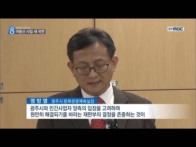 (앵커) 광주시가 특혜 의혹이 일면서 한 발 물러서는가 싶었던 어등산 사업을 다시 원안대로 추진하기로 했습니다. 법원의 강제조정을 5개월만에 다시 받아들이기로 한 것입니다. 시민단체는 법적 대응에 나서겠다고 밝혀 사업 추진 과정에 진통이 예상됩니다. 김철원 기자입니다. (기자) 광주시가 어등산사업을 당초 계획...