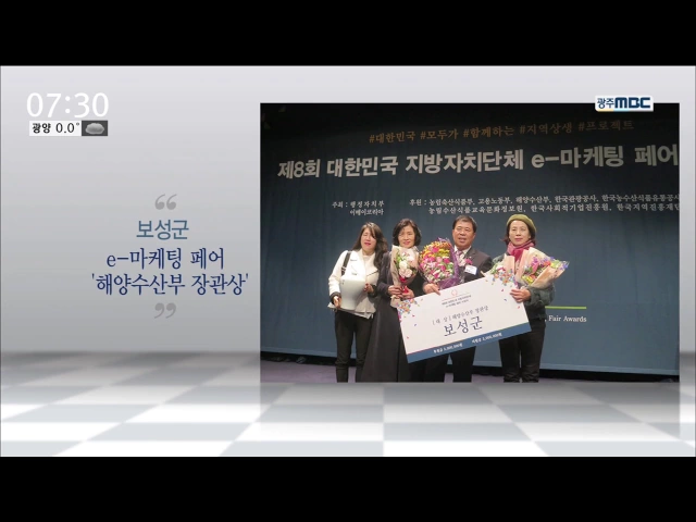 광주 남구가 국민안전처 주관으로 열린 '어린이 안전대상 시상식'에서 대통령상을 수상했습니다. (14) 곡성군이 아이의 강점을 살려 진로를 결정할 수 있도록 '진로*적성 개별 상담회'를 개최했습니다. (14) 보성군이 '대한민국 지방자치단체 e-마케팅 페어' 시상식에서 해양수산 부문 대상을 받았습니다. (13) 나주향교-굽...