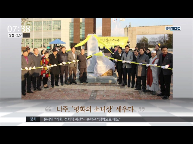 광주 광산구 청소년 문화의 집 '야호센터'가 '같은 것을 보고 다른 것을 생각하기'를 주제로 창의캠프를 개최했습니다. (26) 위안부 여성들의 명예와 인권을 회복하고 일본 정부의 사과를 촉구하기 위한 '평화의 소녀상'이 나주에 세워졌습니다. (27) 곡성군이 주민과 함께 숨겨진 명소를 찾기 위해 '토닥토닥 걷기행사'를 ...