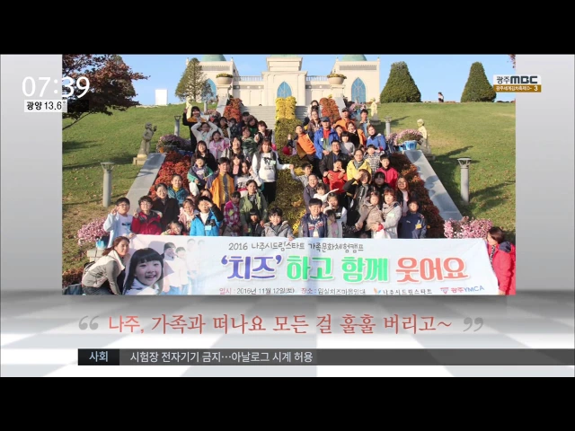 웃음 박사 김영식 남부대학교 교수가 '웃음요가' 교육부문에서 대한민국 문화예술 대상을 수상했습니다. 광주 광산구 신창동 주민들이 이웃과 정도 쌓고 기부도 하기 위해 소소한 나눔터를 열었습니다. (12) 나주시가 가족이 화합할 수 있는 시간을 제공하기 위해 드림스타트 가족과 함께 전북 임실로 떠났습니다. (12) 담...