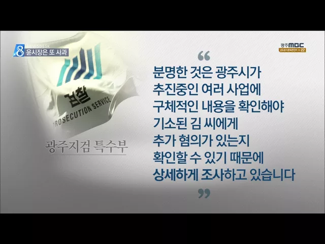 (앵커) 김용구 광주시 전 정책자문관을 상대로 한 검찰 수사가 광주시정으로 확대되면서 공무원들이 잇따라 소환조사를 받고 있습니다. 윤장현 시장은 공직자들에게 미안하고 죄송하다며 이번 수사와 관련한 두번째 사과문을 냈습니다. 김철원 기자입니다. (기자) 처음엔 건설업체와의 유착 혐의에서 시작됐던 김용구씨 수...