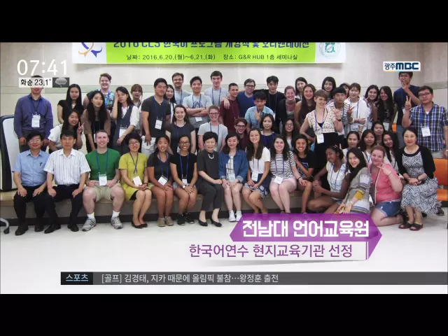 광주 동구합창단이 러시아 소치에서 열린 세계합창경연대회에서 동메달을 받았습니다.(6-10) 전남대학교 언어교육원이 미국 국무부가 위탁하는 한국어교육 프로그램 교육기관으로 2년 연속 선정됐습니다. 동강대학교가 여름방학을 맞아 대만 남태과학기숙대학교 학생을 초청해 캠프를 열었습니다. (3-9) 곡성군이 지역 내 ...