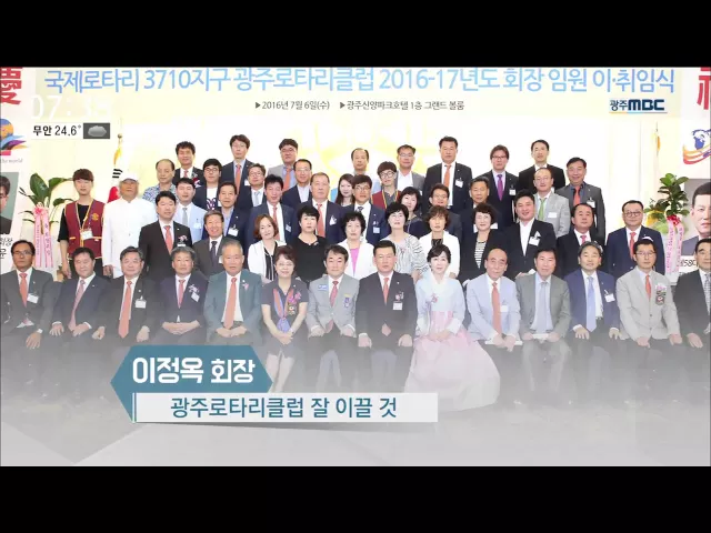 1913송정역시장의 지속가능한 발전을 위해 광산구와 광주전남중소기업청, 상인회가 업무협약을 맺었습니다. 국제로타리 3710지구 광주로타리클럽 제 57대 손재윤 회장 이임식과 제 58대 이정옥 회장의 취임식이 열렸습니다. (6) 전남대학교 농업생명과학대학 학생들이 미래소재 아이디어 경진대회에서 우수상을 받았습니다....