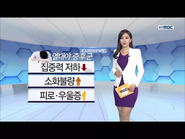 한 여름 밤의 불청객이 작년보다 20일 빨리 우리 곁을 찾아왔습니다. 바로, 열대야인데요. 밤의 최저기온이 25도 이상인 날을 말합니다. 후텁지근한 온도 때문에 밤잠을 설치기 쉬운데요. 자고 일어나도 온몸이 뻐근하고, 집중력 저하와 소화불량 등으로 일상생활에도 영향을 줍니다. 이런 열대야 증후군, 어떻게 극복할 수...