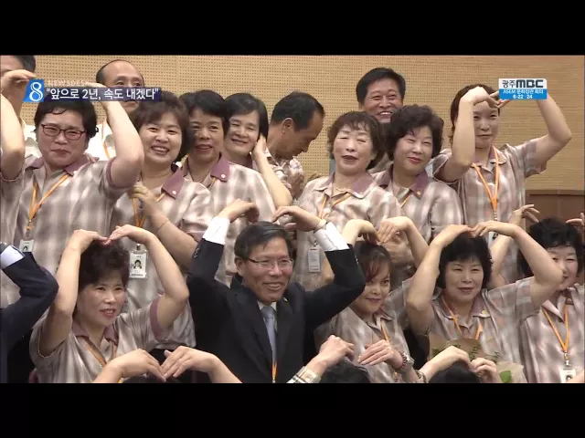 (앵커) 윤장현 광주시장이 앞으로 2년은 민생 문제 해결을 위해 속도를 내겠다고 밝혔습니다. 지난 2년동안은 비록 속도는 떨어져도 방향은 옳았다는 판단에 따른 것인데 시민단체의 평가는 조금 달랐습니다. 윤근수 기자 (기자) 민선 6기 반환점에 선 윤장현 광주시장은 앞으로 2년은 시정의 중심을 '민생'에 두고 '담대한...