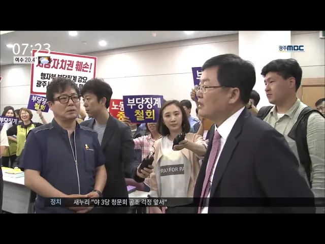 (앵커) 광주시 공무원노조의 전공노 가입에 따른 갈등이 몇 달째 계속되고 있습니다. 정부의 강경 대응으로 파장이 커지는 모양새입니다. 이게 그럴만한 일인가 하는 비판적인 목소리도 나옵니다. 보도에 정용욱 기자입니다. (기자) 전공노 가입을 주도한 광주시 공무원노조 간부들의 징계 여부 결정이 결국 연기됐습니다. ...